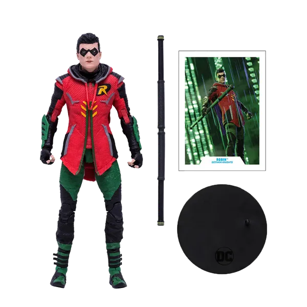 Based on his appearance in the Gotham Knights video game comes an incredibly detailed 7-inch scale figure of Robin. This DC Gaming Wave 6 Gotham Knights Robin 7-Inch Scale Action Figure is designed with ultra articulation with up to 22 moving parts for full range of posing and play. Robin comes with his staff and a base.