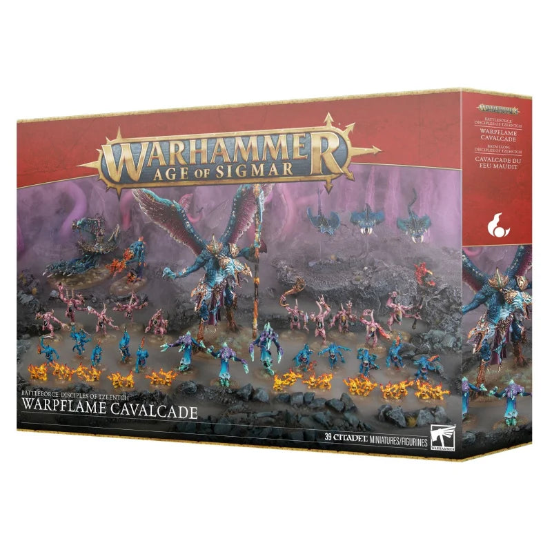 Celebrate the launch of the new Battletome: Disciples of Tzeentch with a packed box of magical miniatures, perfect for starting a new army or adding a daemonic contingent to your existing troops. The Warpflame Cavalcade is led by the mighty Kairos Fateweaver himself – a legend among the Lords of Change who see into the past and future.