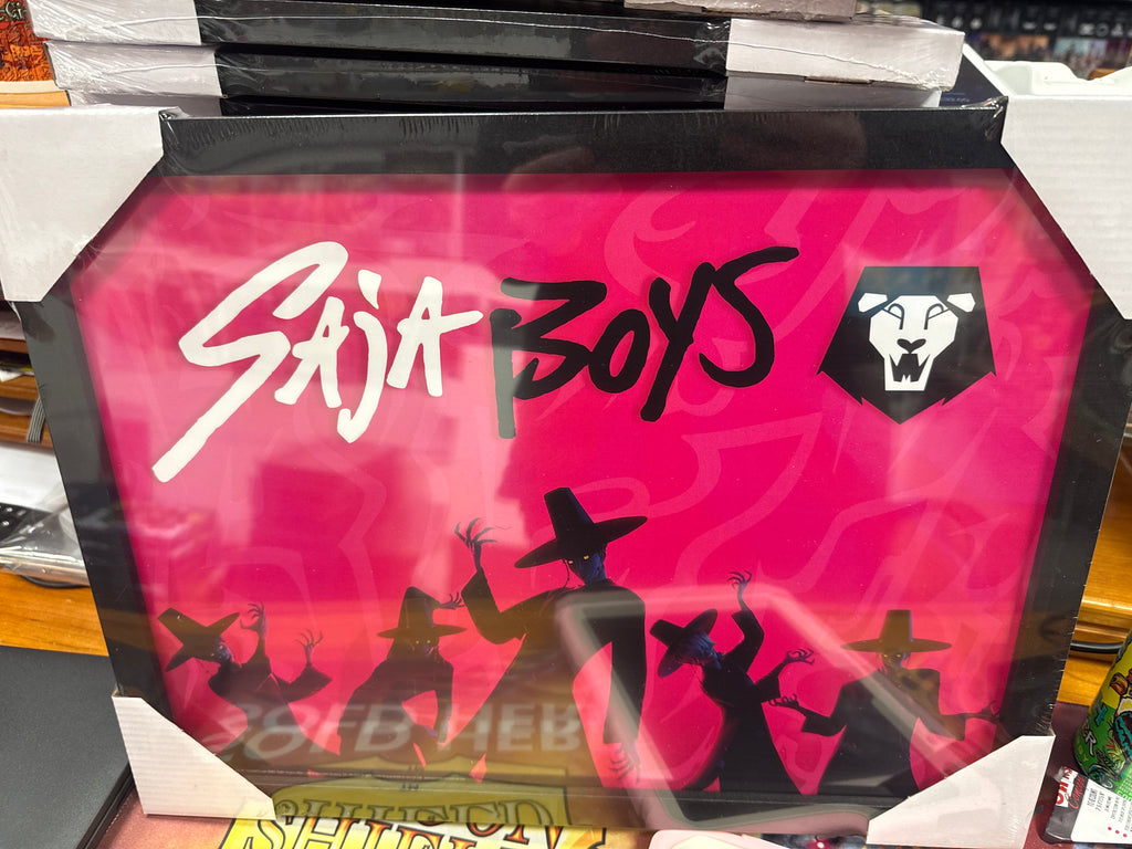 An officially licensed K-POP Demon Hunters  framed print available to buy direct from the publisher with free UK delivery. The 30 x 40cm print is framed in a black wood effect wrapped around an MDF frame with clear plastic glazing making it safe, lightweight and easy to hang using the sawtooth bracket attached on the back.